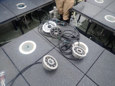 噴水がDMX制御であるため、照明も同じコントローラーから制御を行う。